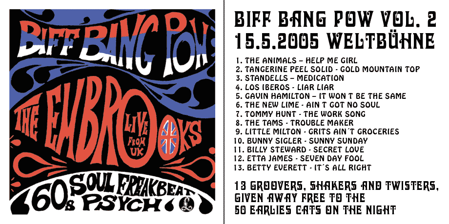 13 groovers, shakers and twisters, given away free to the 50 earliest cats on the night.